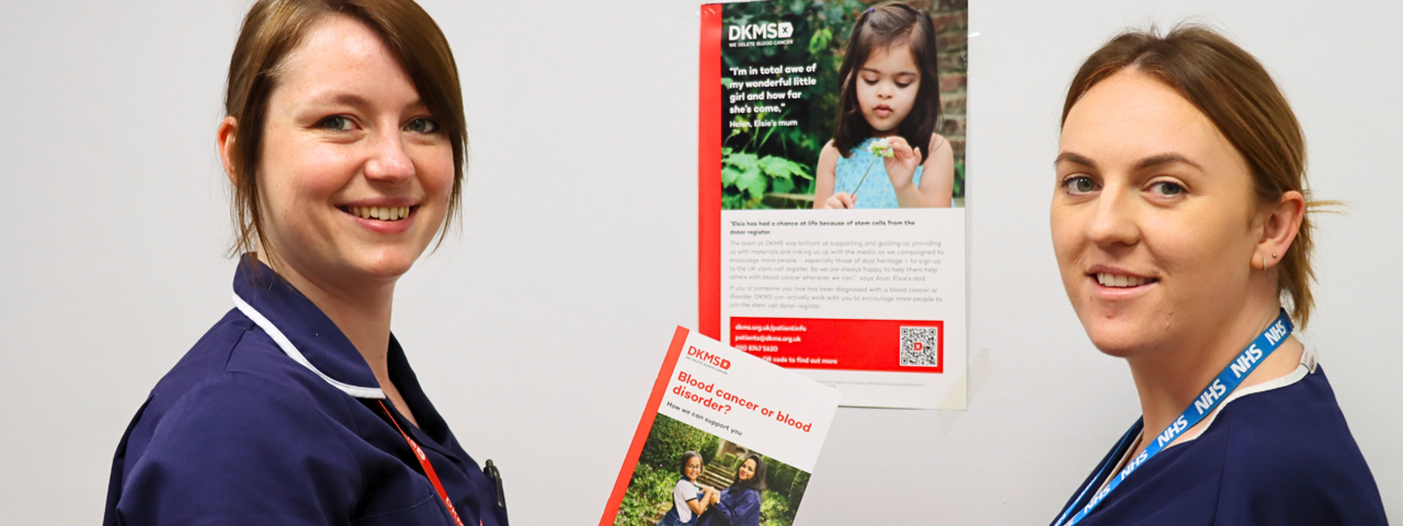 DKMS has supplied Gabriella and colleagues with information for patients and their families following diagnosis with a blood cancer or disorder requiring a stem cell transplant, explaining how the charity can support them. They have also provided leaflets encouraging people to find out more about the quick and simple process of registering as a potential stem cell donor, helping them to make an informed choice about signing up.