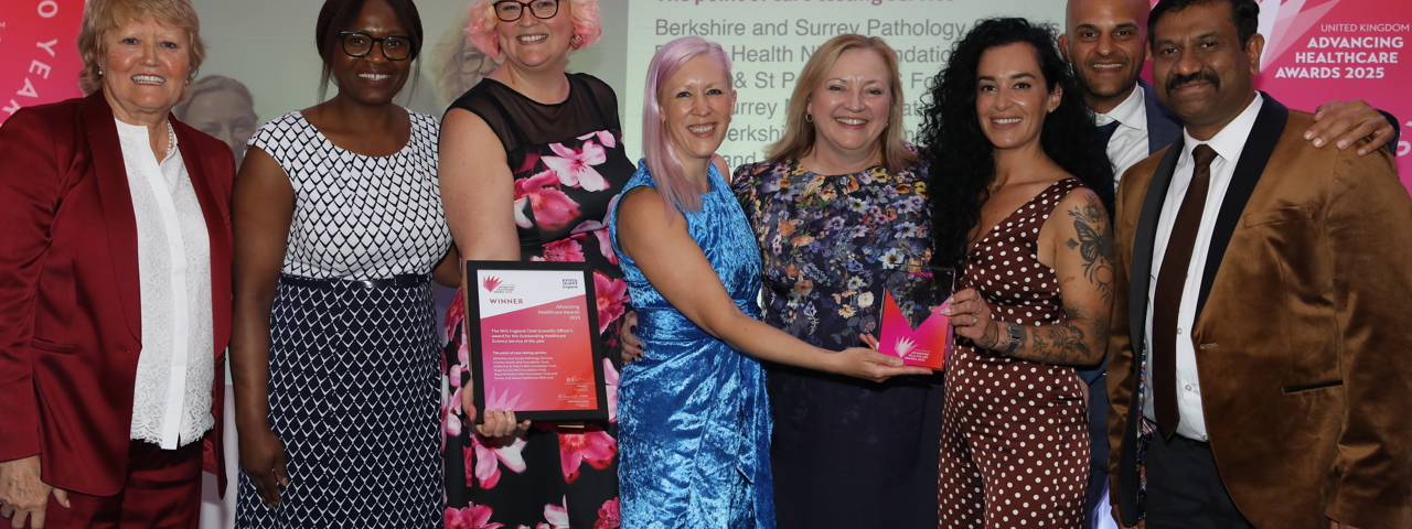 Congratulations to the Point of Care Testing (POCT) team at Berkshire and Surrey Pathology Services (BSPS) who last week won the NHS England Chief Scientific Officer Award for the Outstanding Healthcare Science Service of the year in the 2025 Advancing Healthcare Awards.