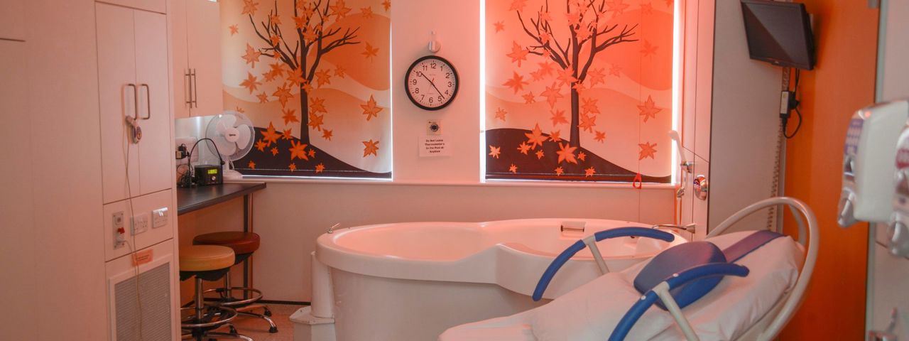 Our Rushey ward has four birthing rooms, equipped to support active, natural birth in a clam and relaxed environment. Each room has a birthing ball and active birthing furniture to provide comfort during labour. We have one room with a birthing pool and the others have a bath for use during labour.
